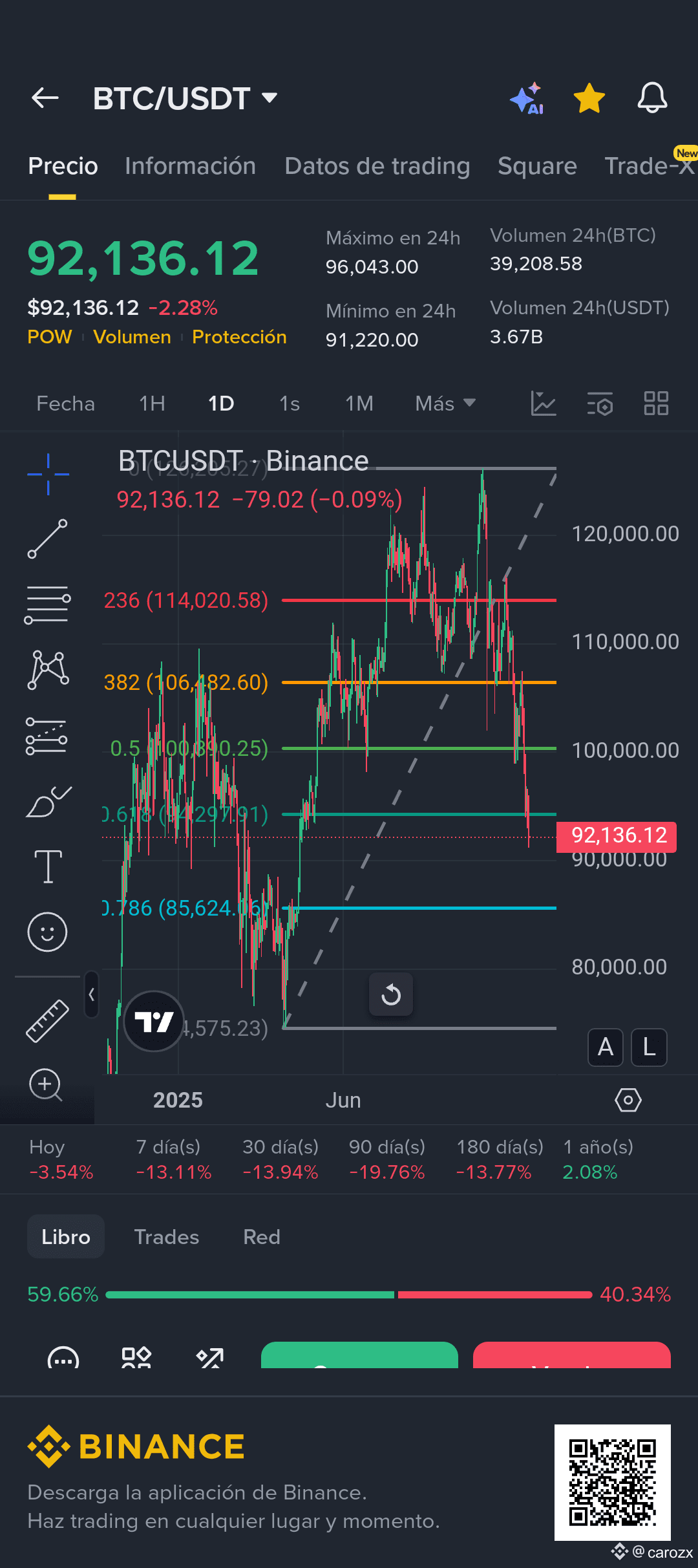 Hace días compartí mi entrada en el nivel 0.618 (~92,200 USDT), y ahora observo con paciencia el acercamiento al 0.786 como posible próxima zona de acumulación. No se trata de adivinar el piso, sino de construir posición en zonas de valor.