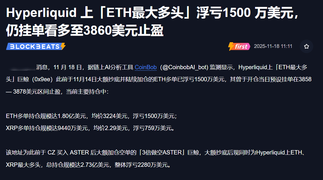 În această dimineață, ETH a fost vândut la un preț „de sărit de la etaj”, 3008 dolari, și tu încă te mai ții? Eu, marinarul, m-am întors cu cele mai recente „rapoarte de război sângeroase”! Pe Hyperliquid, acel „cel mai mare long pe ETH” acum pierde atât de mult încât numără stelele peste noapte, 15000000000 de dolari s-au risipit, dar el tot vrea să reziste până la 3860 de dolari pentru a închide poziția!