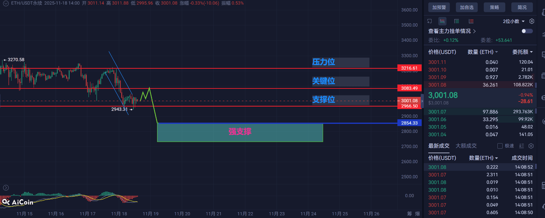ETH se zbate în jurul prețului de „plafon” de 2854 dolari, iar „linia de viață și moarte” de 3001 dolari este acum „ușa morții”! Va reveni la 3083 dolari? Asta este „gilotina” ursului! Va urca la 3216 dolari? Asta este „iarba de pe mormânt” înălțimea! Linia de tendință descendentă apasă puternic, iar revenirea pe termen scurt este doar „lumina de la capătul tunelului”, pe termen lung perspectiva este și mai „catafalc” închis!