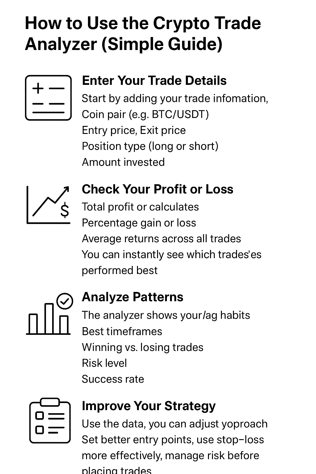 Analizatorul de tranzacții $BTC Crypto este un instrument util care permite traderilor să revizuiască, să măsoare și să îmbunătățească performanța tranzacțiilor. Indiferent dacă sunteți începător sau un trader experimentat, acest instrument vă poate arăta ce funcționează — și ce nu.