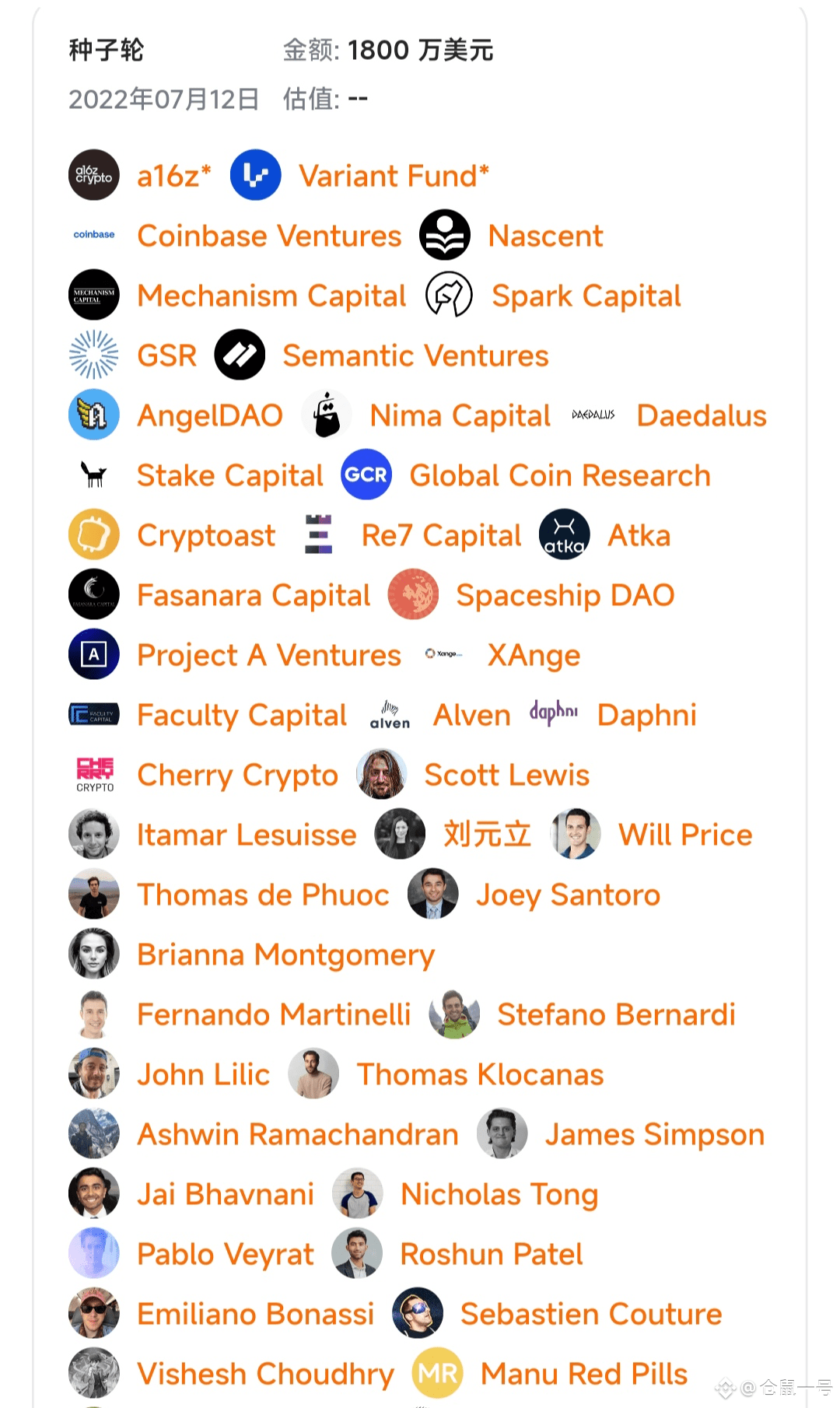 - 2022年7月完成1800万美元种子轮,a16z、Coinbase Ventures等领投;