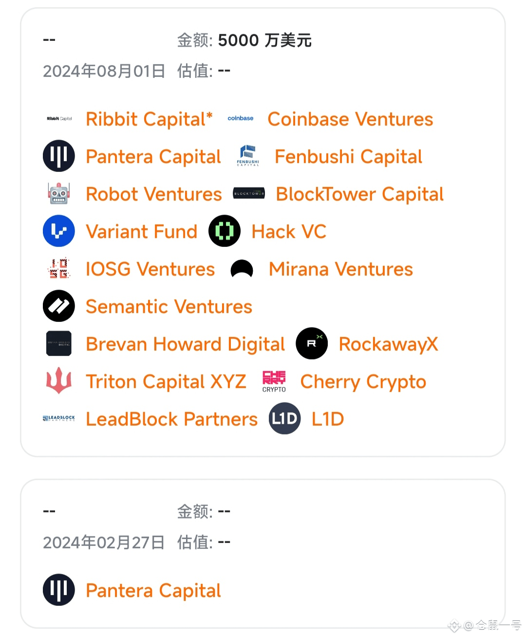 - 2024年8月完成5000万美元融资,Ribbit Capital、Pantera Capital、Fenbushi Capital等行业头部机构入局,累计融资超6800万美元;