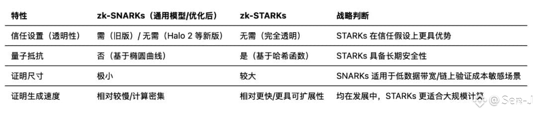 zk-SNARKs 与 zk-STARKs 关键技术特性对比: