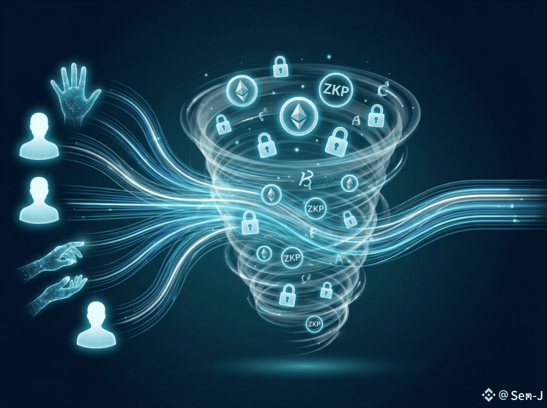 用户将资金存入智能合约(存款池)后,会收到一个"秘密代码"。在提款时,用户无需透露此前的存款地址,只需提供一个零知识证明,证明他们拥有有效的秘密代码,而无需透露代码本身或其他任何关于存款的信息。这种机制使得提款操作在链上被完全匿名化,并与原始存款地址解除关联。
