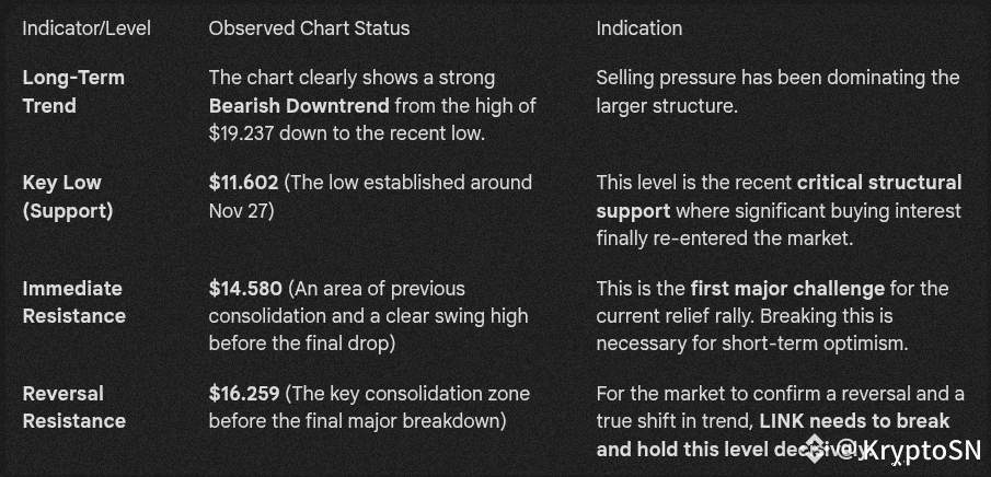 While the bounce in LINK from the $11.602 low is encouraging, it is currently categorized as a relief rally within the context of a larger downtrend. Patience is key.