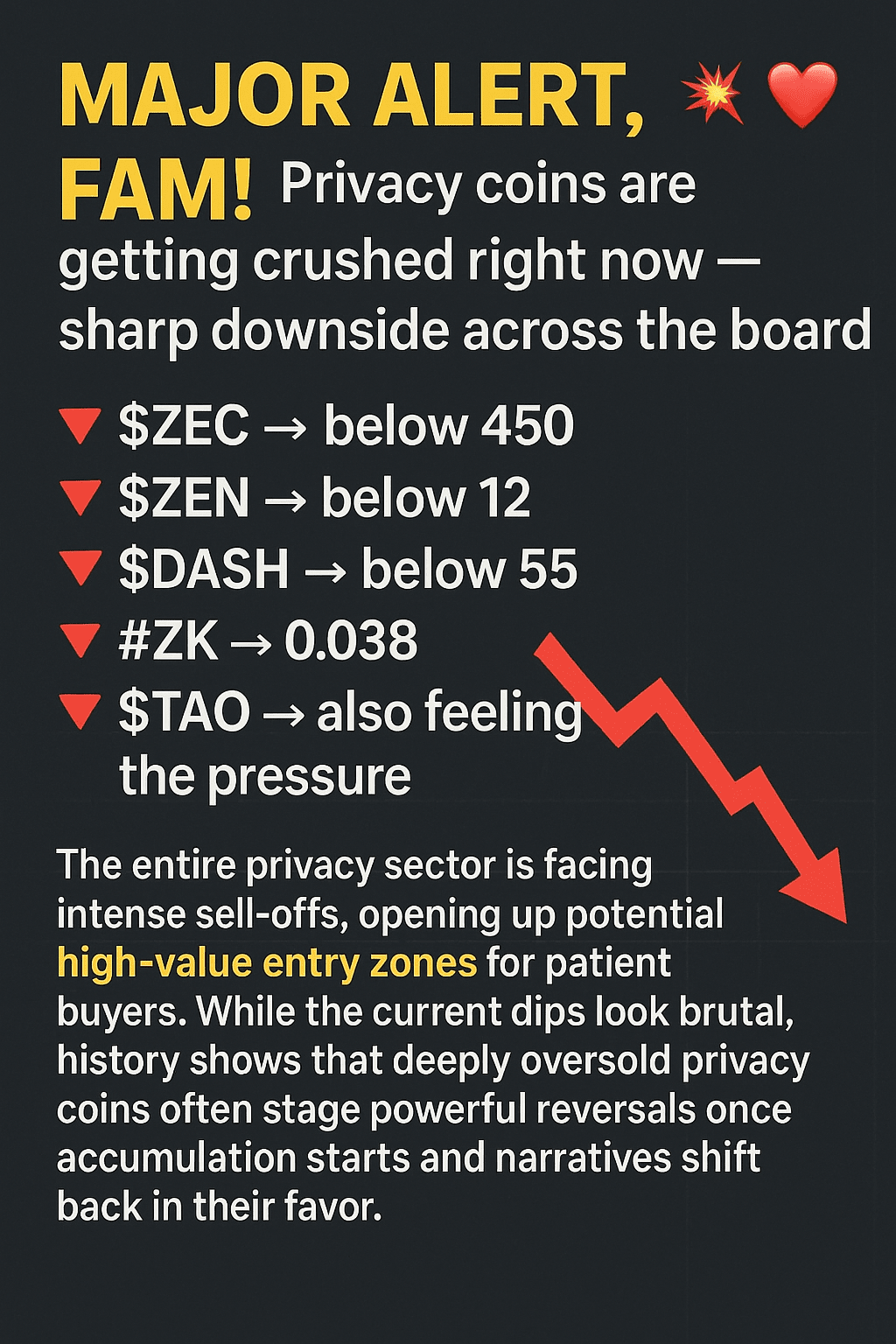 Monedele de confidențialitate sunt zdrobite în acest moment — o scădere accentuată pe toate fronturile 📉