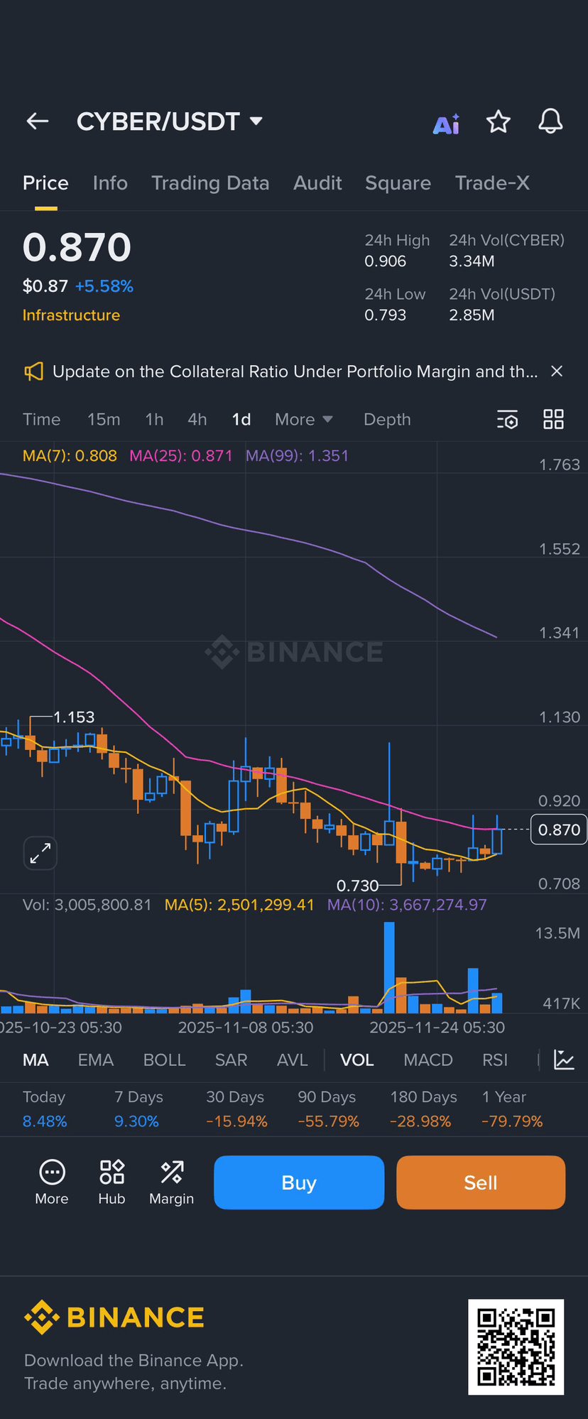 Pereche arătată: $CYBER /USDT pe Binance