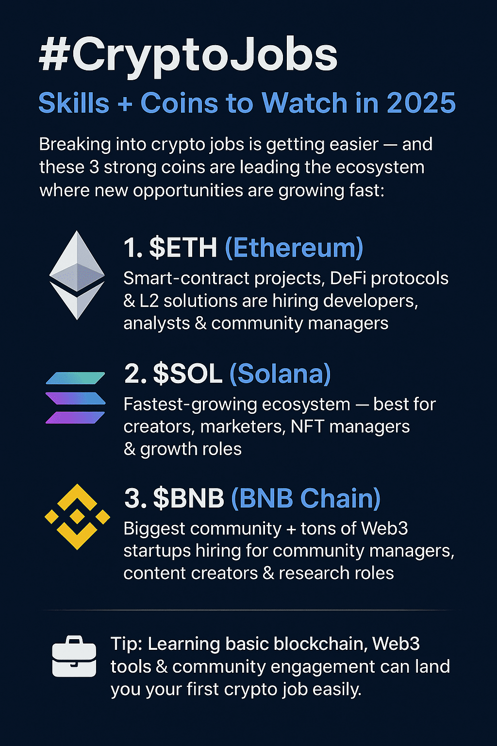 Intrarea în locurile de muncă crypto devine mai ușoară — iar aceste 3 monede puternice conduc ecosistemul în care noi oportunități cresc rapid: