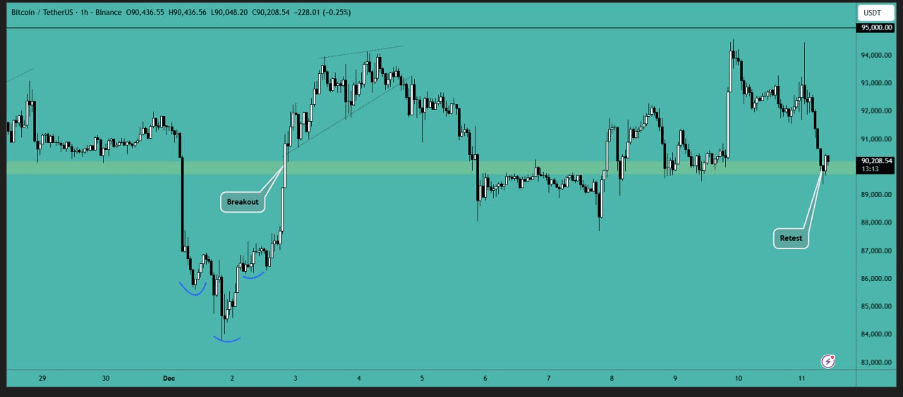 Bitcoin a avut dificultăți în a atinge marcajul de 95.000 USD și a experimentat o scădere a prețului în urma știrilor despre o reducere a ratei. Prețul testează acum din nou zona de 90.000 USD, iar este esențial să se mențină deasupra acestui nivel. O închidere sub 90.000 USD ar fi considerată negativă, așa că trebuie să monitorizăm cum reacționează prețul.