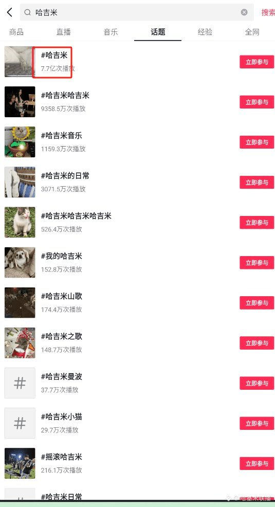 哈吉米:7.7万人参与,7.6亿次播放。