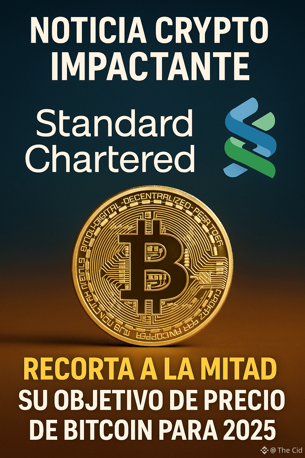 📉 Bitcoin pierde brillo en las proyecciones institucionales: El reconocido banco global Standard Chartered ha sorprendido al mercado cripto al **reducir su pronóstico de precio para Bitcoin (BTC) al cierre de 2025 de **$200,000 a solo $100,000, es decir, una reducción del 50% respecto a su proyección anterior.