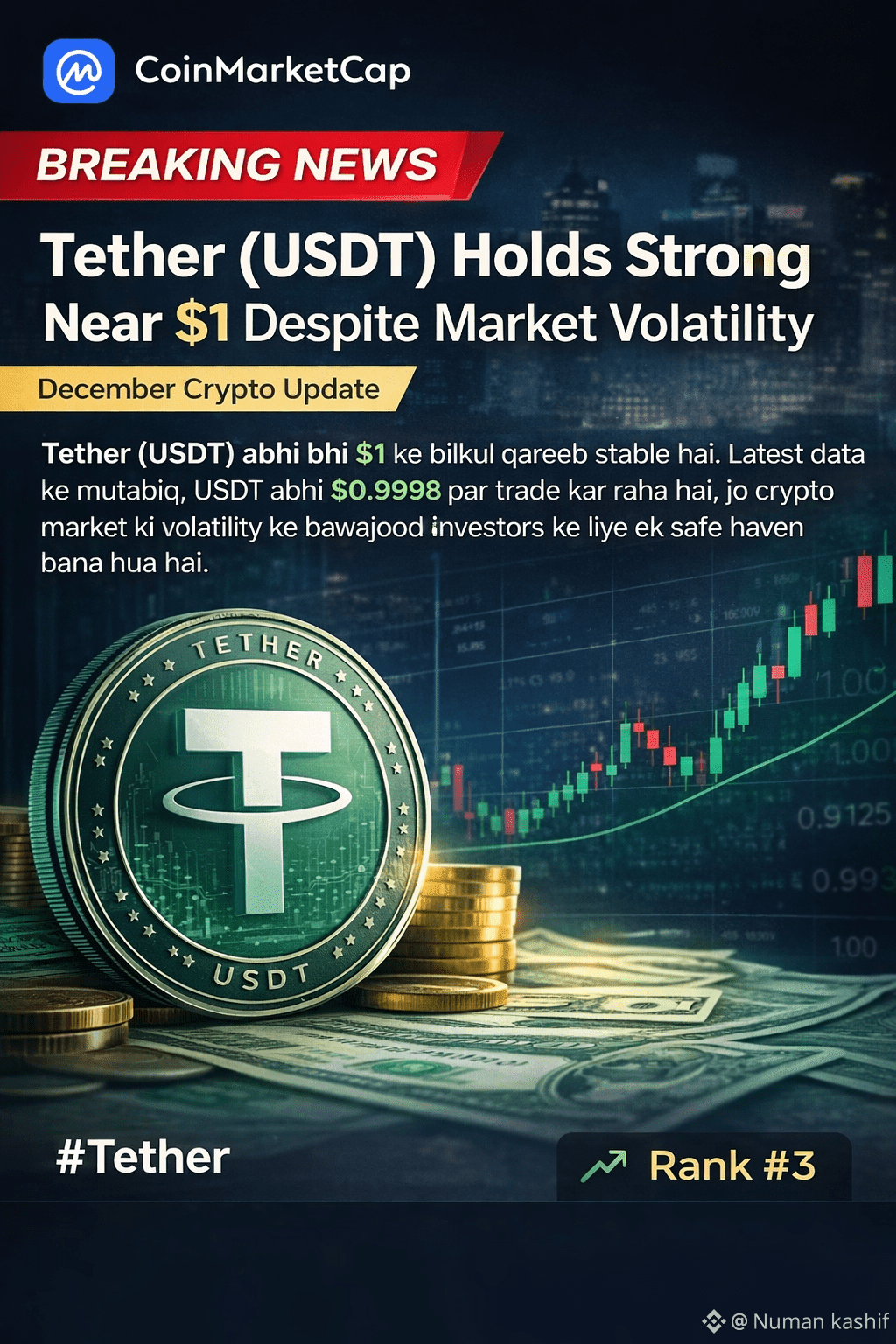 Market Rank #3 ke sath, USDT abhi bhi crypto ecosystem ka aik strong aur reliable pillar mana ja raha hai.