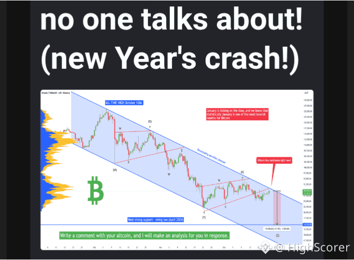 What we see on the chart is a blue descending parallel channel. This channel is the current pattern that we play on Bitcoin in this timeframe. Because the price is inside the channel and near the trendline resistance, we cannot be bullish at this point. What traders must understand is that we sell a resistance and buy a support, not the opposite. Currently the price is in a sell zone around 90k - 91k at the top of the channel. There is still an unfilled FVG at 91k - 92k that acts as a strong resistance. January is ticking on the door, and we know that statistically January is one of the most bearish months for Bitcoin. Currently I do not see any reason to be bullish, so I have to stay bearish at this point.