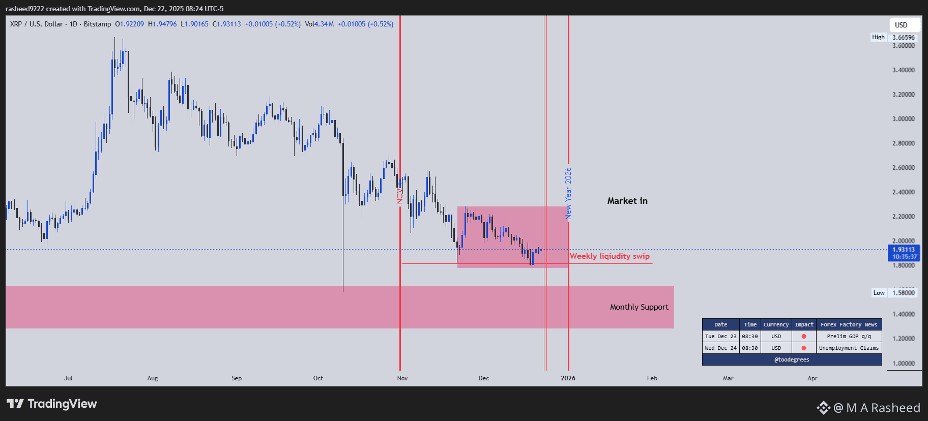 XRP$XRP is currently trading within a consolidation range after a recent liquidity sweep on the weekly timeframe. Price action suggests the market is in a decision-making phase, with participants waiting for macro confirmation.#usd #MacroMarkets #EconomicData #cryptoeducation