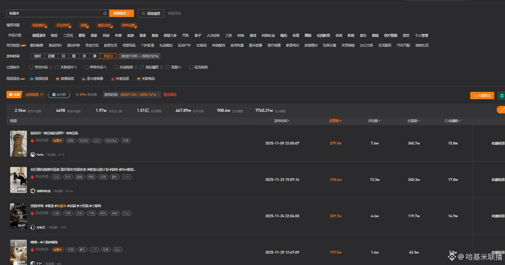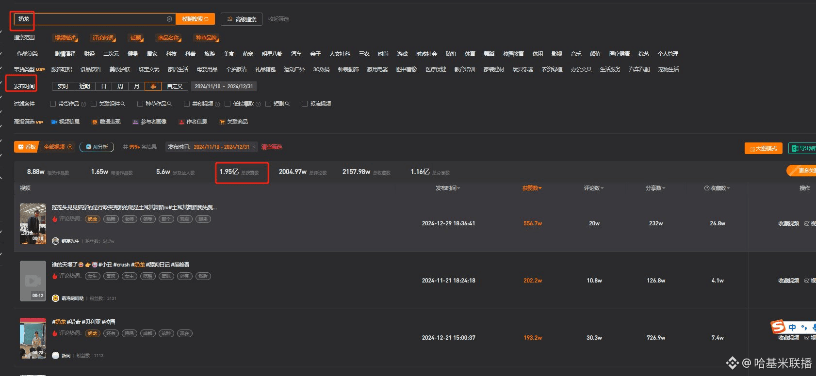 哈基米之歌数据远比短视频更高,但无法统计,详见第9期。