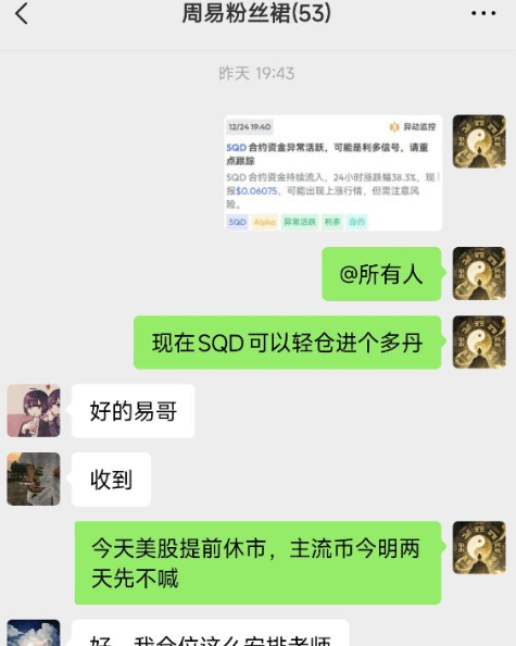 Fraților, eu sunt Zhou Yi. Astăzi, când m-am trezit, grupul a fost din nou umplut de mesaje de la SQD! O stâlpă de susținere se ridică direct spre cer, iar creșterea de 30%-40% îi face pe oameni să simtă adrenalina, dar având în vedere cât de repede se ridică, nu te simți și tu neliniștit: mai poți să te alături acum? Oare nu va cădea brusc?