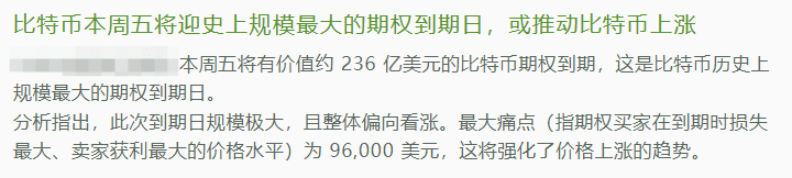 Știri: expirarea opțiunilor de 23,6 miliarde de dolari, punctul maxim de durere 96000!
