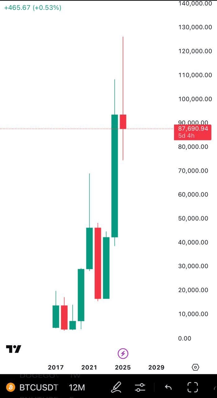 Începând de astăzi, 26 decembrie 2025, este posibil să vedem o volatilitate sau manipulare înainte ca anul să se încheie. Dar, desigur, nu ne vom baza doar pe graficul anual — să trecem la intervalele mai mici pentru o analiză suplimentară.