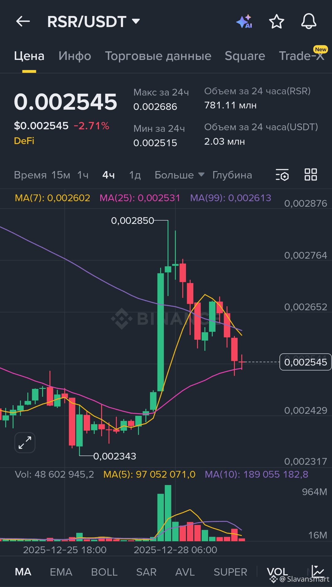 Цена RSR сейчас ~0.00254 - 0.00260💲