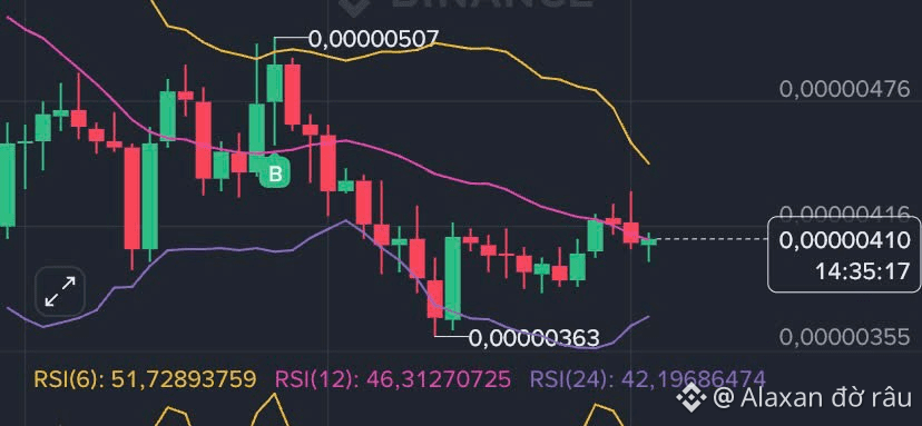 Hỗ trợ ngắn hạn: Vùng hỗ trợ quanh ~$0.0000036–$0.0000037 được xem là “đáy tổ chức” nếu giá tiếp tục giảm.