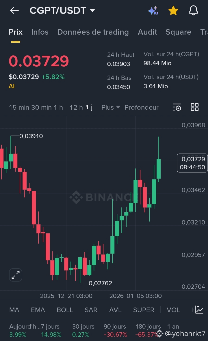 En ce début janvier 2026, l'intelligence artificielle reste le narratif dominant et ChainGPT ($CGPT) se positionne comme l'un des leaders incontestés de l'infrastructure IA pour le Web3. Avec une performance de +14,10 % sur les 7 derniers jours, CGPT surpasse largement le reste du marché des plateformes de smart contracts.