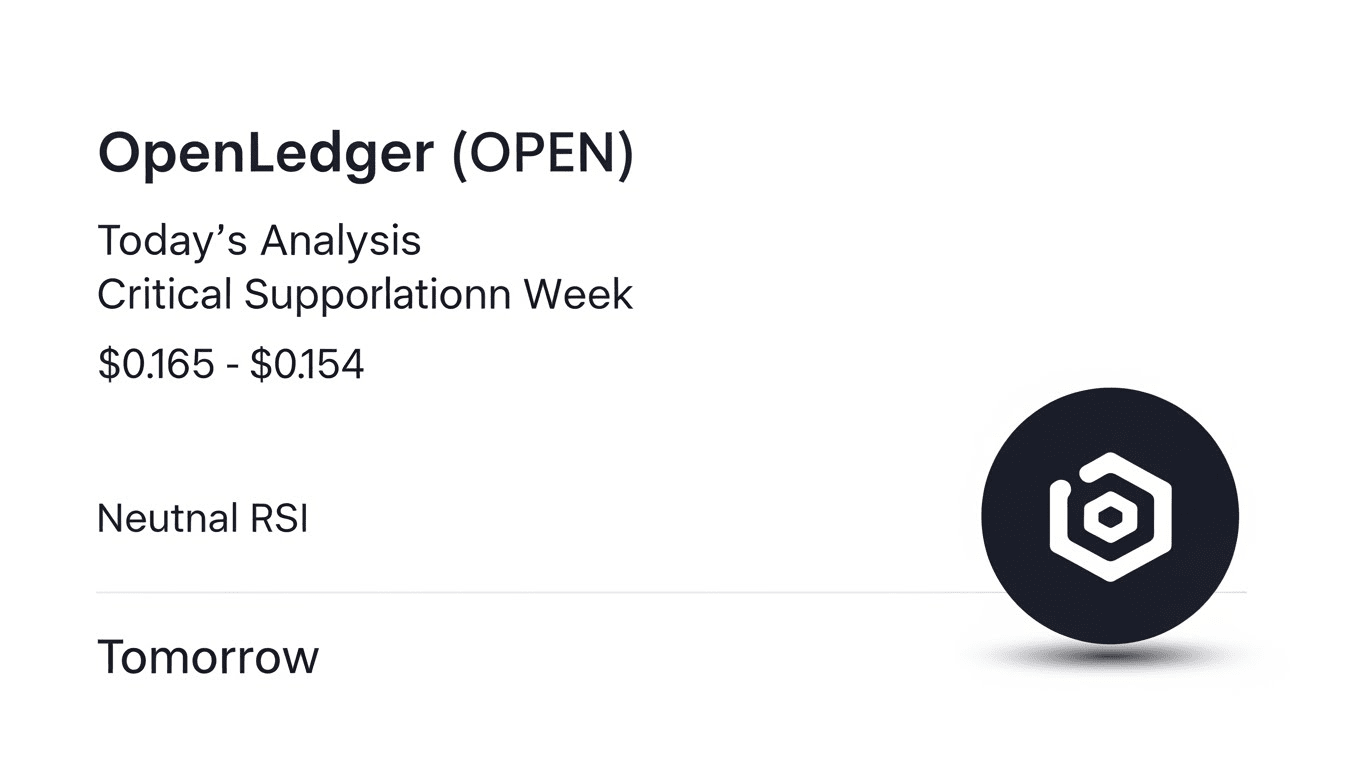 OpenLedger ( $OPEN ) este în prezent tranzacționată în jur de $0.165 până la $0.17, arătând o ușoară consolidare bearish după o săptămână volatilă. Mișcarea de astăzi indică un RSI neutru, sugerând că piața este indecisă dar menține un nivel critic de suport aproape de $0.154. Pentru mâine, așteptările se înclină spre o posibilă revenire minoră dacă rămâne deasupra suportului, dar o breșă în jos ar putea duce la o răcire suplimentară. Investitorii sunt sfătuiți să urmărească o "Divergență Bullish" pe intervale de timp mai scurte, care ar putea declanșa o recuperare către nivelul de rezistență de $0.18.