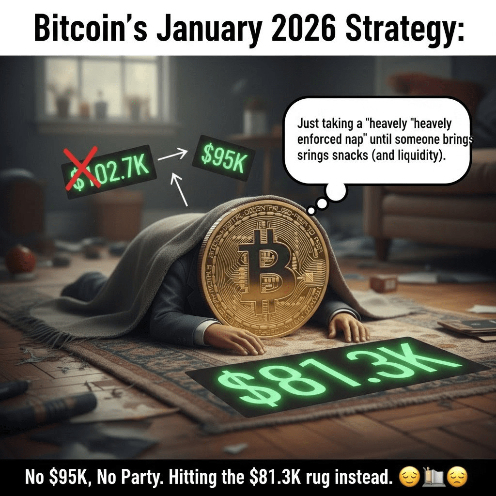 Nu este o prăbușire a pieței; este doar Bitcoin decidând să ia un "somn sever impus" în timp ce așteaptă ca lumea să înceteze să mai fie ciudată. Dacă nu poate face față treptelor înapoi la $95k, pur și simplu va sta întins pe acel covor de $81k și va refuza să se miște până când cineva îi aduce câteva gustări (liquidity).