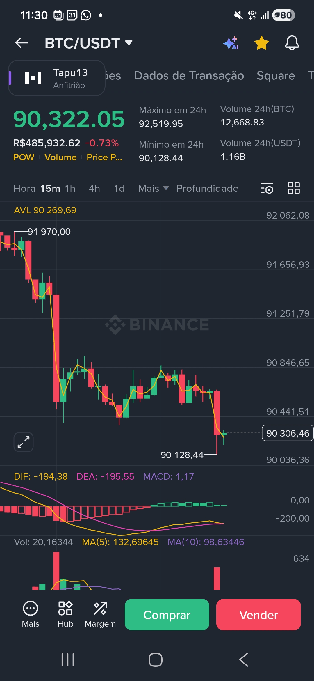 * Médias Móveis: Sinalul este "Vânzare Puternică" (Strong Sell) pe graficele mai mici. BTC operează sub Media Mobilă de 5 zile ($91.267) și de 50 zile ($90.845). Aceasta arată că tendința pe termen scurt este încă descendentă.