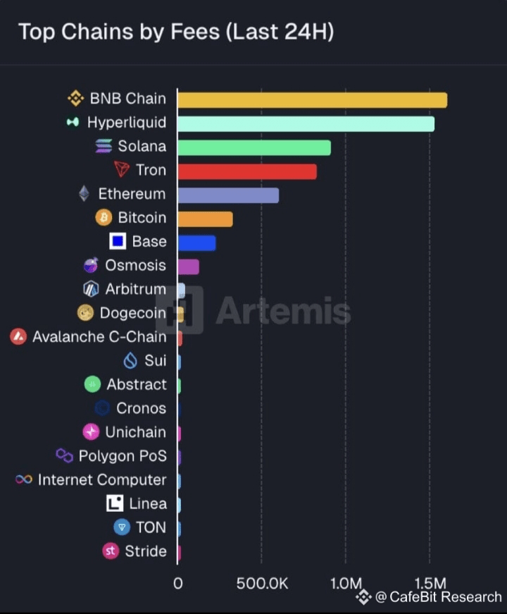BNB Chain a condus temporar clasamentele veniturilor din taxe pe 24 de ore, depășind Solana - un semn de utilizare puternică pe termen scurt. Dar metricile mai largi pe luni sau totalurile anuale arată încă că Solana și altele generează mai multe venituri din taxe în general. #StrategyBTCPurchase #WriteToEarnUpgrade #USDemocraticPartyBlueVault #BTCVSGOLD