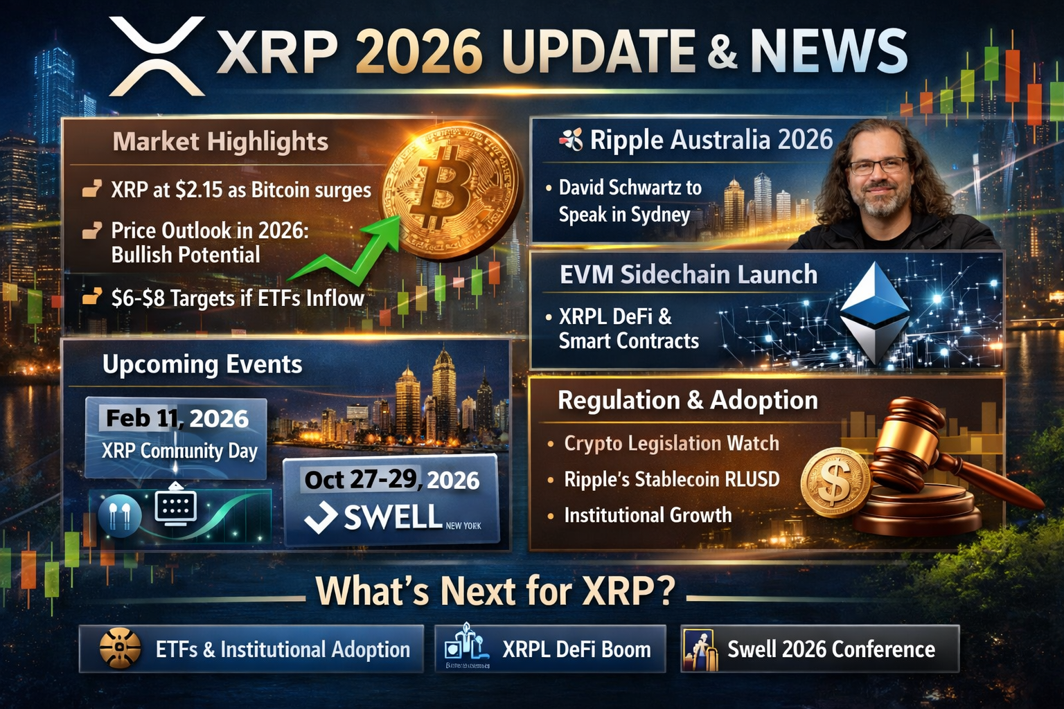 Ripple Australia 2026: Co-fondatorul Ripple, David Schwartz, va fi cap de afiș la XRP Australia 2026, semnalizând continuarea implicării comunității și dezvoltatorilor.