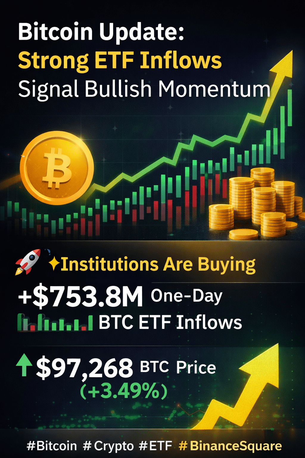 📊 $BTC ETF-urile Spot au văzut +$753.8M în intrări nete, împingând activele totale ETF la $149.52B. Acest tip de intrare reflectă de obicei acumularea pe termen lung de către jucători mari, nu hype-ul pe termen scurt.