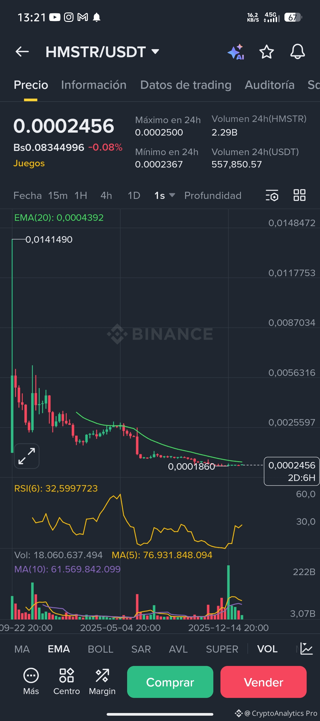 El volumen sigue siendo alto (más de 2 billones de tokens en 24h), lo que demuestra que la comunidad sigue activa. Sin embargo, la presión de venta sigue siendo fuerte. Para los "holders", la paciencia es la clave; para los "traders", los rebotes en el RSI podrían dar entradas rápidas.