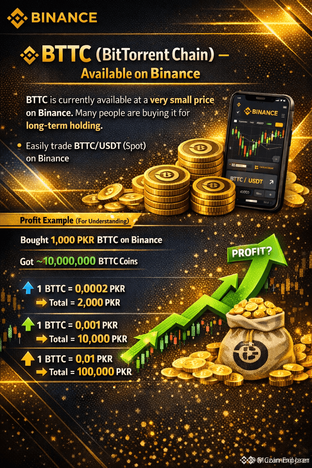 یہ تصویر BTTC (BitTorrent Chain) کو با$ئنانس پر $BTTC #ایک کم قیمت کرپٹو کرنسی کے طور پر پیش کرتی ہے۔
