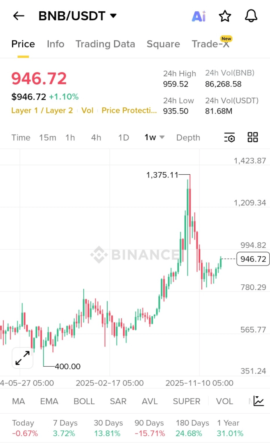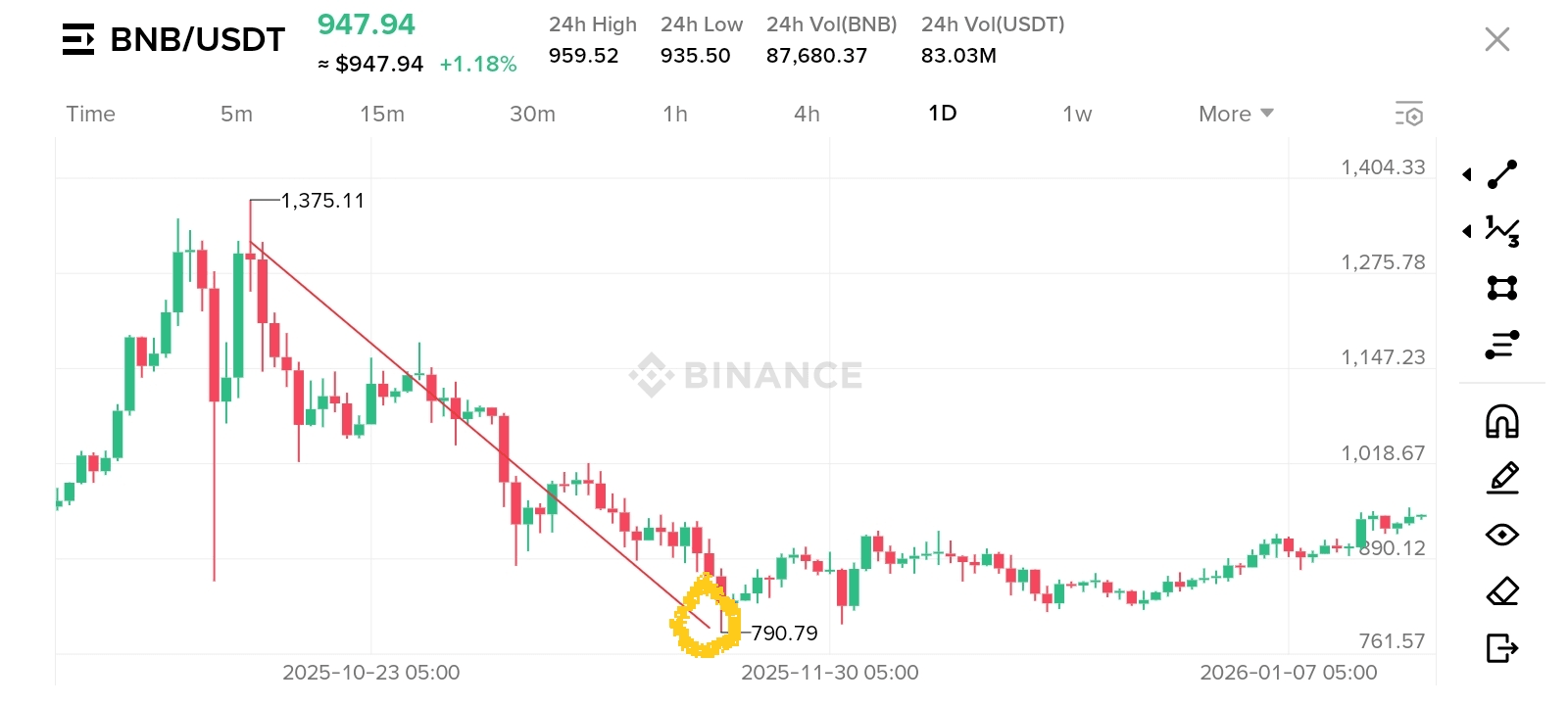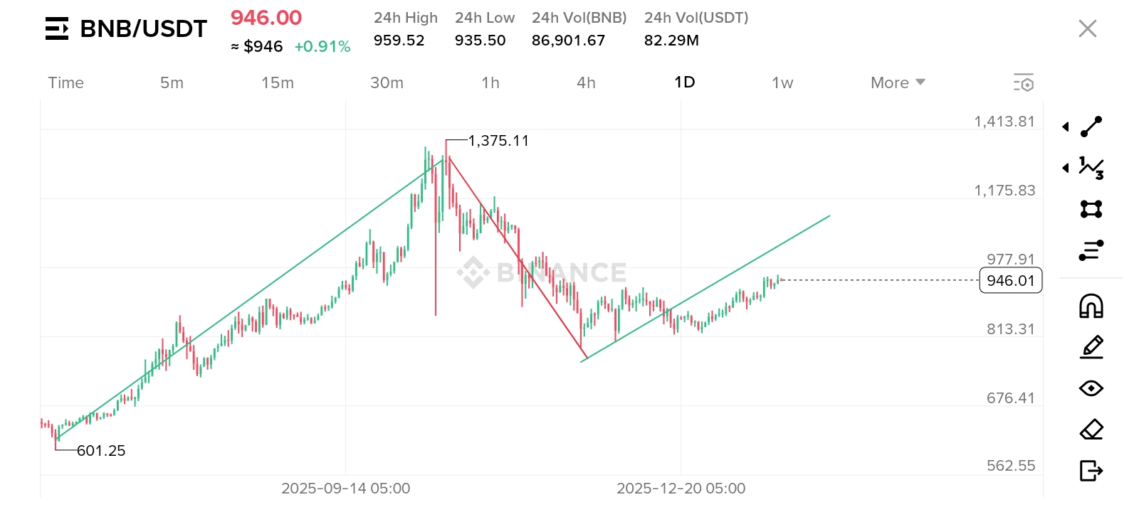 Nu, acest grafic arată clar că BNB va atinge ATH în următoarea creștere 🐂