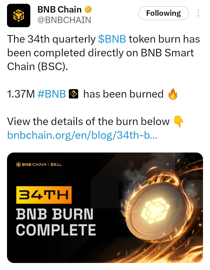 Privește în această imagine 34th Quarterly BNB Token Burn