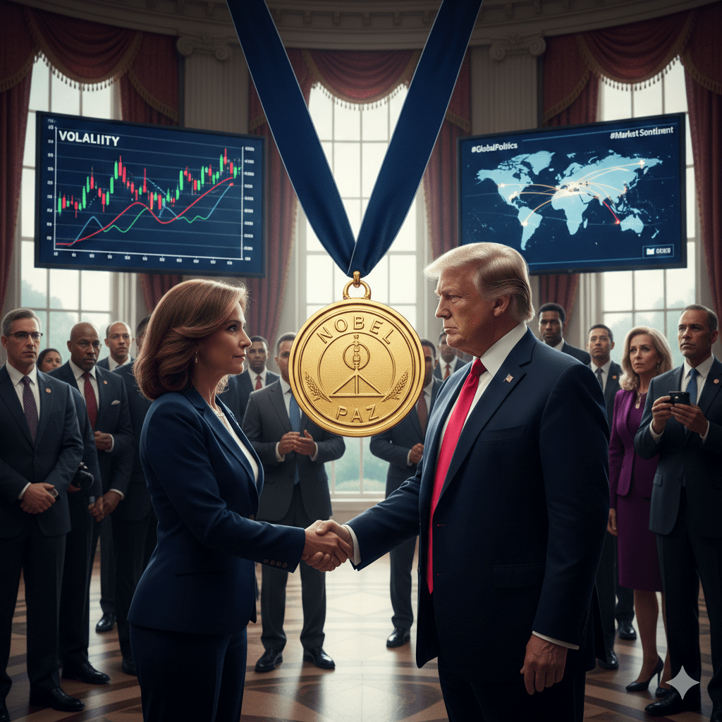 În cadrul unei întâlniri recente de înalt nivel la Washington, lidera opoziției venezuelene, María Corina Machado, a făcut un gest pe care mulți l-au interpretat ca fiind profund simbolic, mai degrabă decât pur ceremonial. Prin oferirea medaliei sale de premiu Nobel pentru Pace fostului președinte american Donald Trump, ea a transmis un mesaj care a rezonat mult dincolo de cameră — aprinzând dezbateri în cercuri politice, diplomatice și de piață.