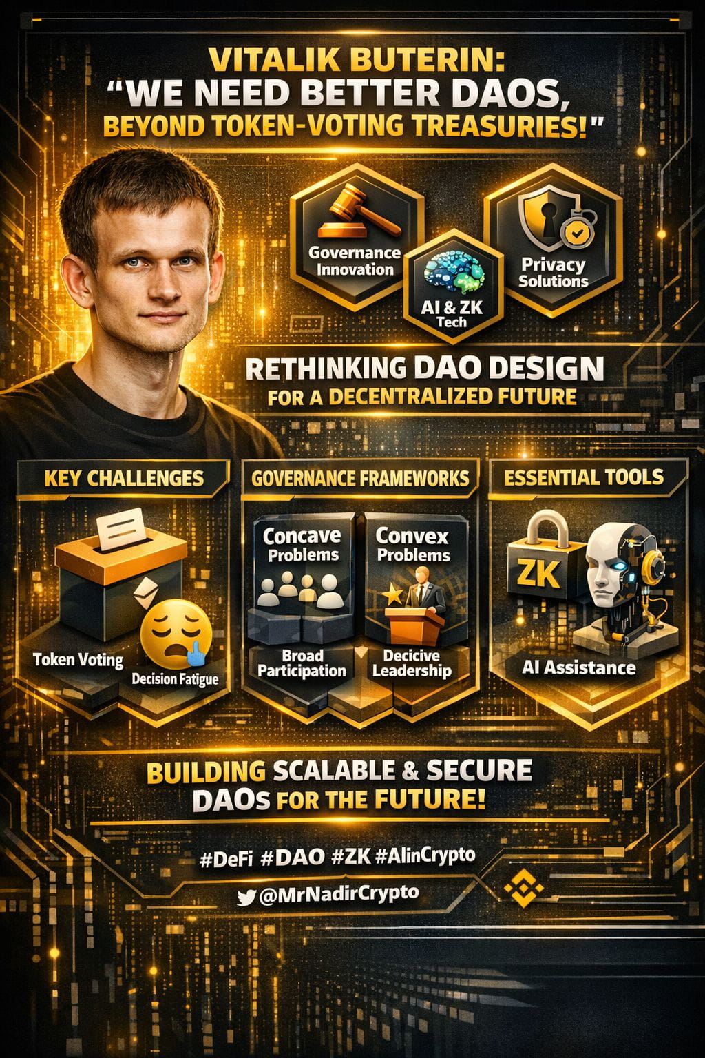 AI Summary: Ethereum co-founder Vitalik Buterin urges the crypto community to rethink DAO designs, emphasizing that most current DAOs have strayed from their original vision and are largely reduced to token-controlled treasuries. He highlights the need for governance innovation, privacy preservation, and better decision-making frameworks to realize the full potential of decentralized autonomous organizations.