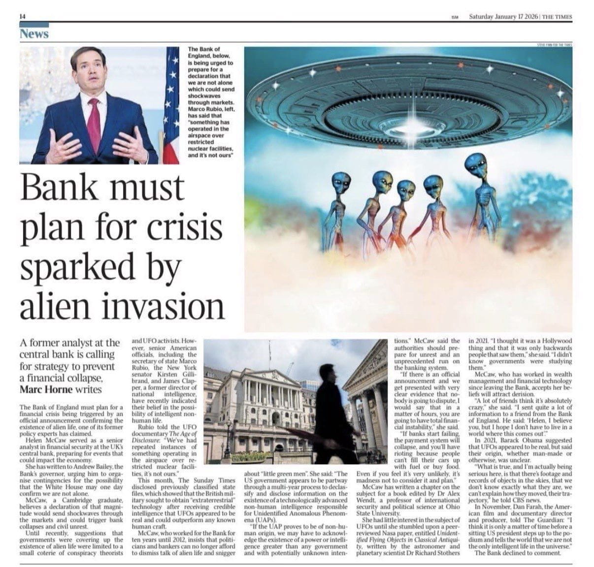 BREAKING: THE BANK OF ENGLAND IS BEING ASKED TO PREPARE FOR A FINANCIAL CRISIS IF A PRESIDENT EVER CONFIRMS ALIENS ARE REAL