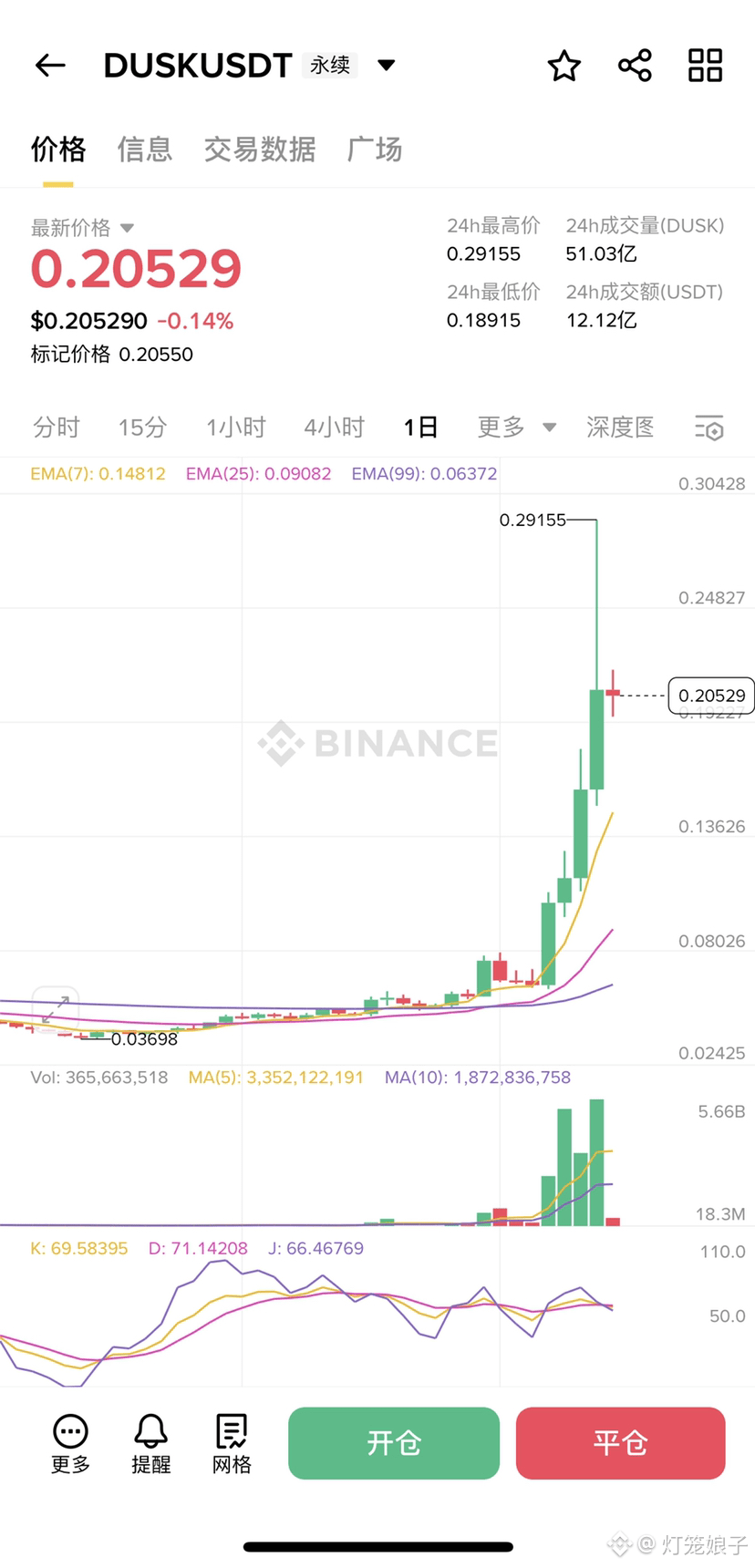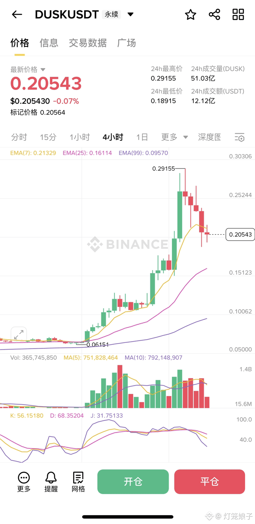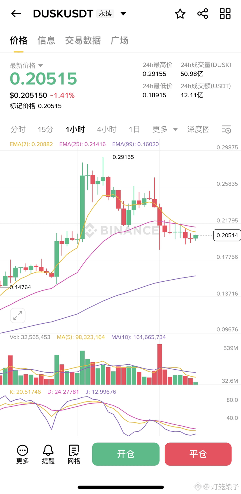 • 做空风险: 日线大趋势依然向上,下方0.189有强支撑,随时可能出现暴力反弹(B浪反抽),做空容易被拉爆。