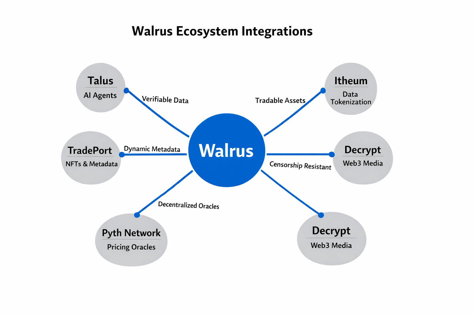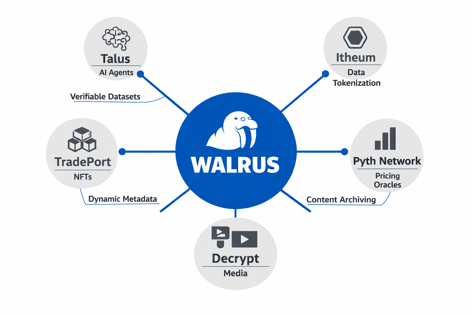 De ce funcționează atât de bine ecosistemul Walrus? Este agnostic la lanț și construit pe Sui. Echipa a lansat pe mainnet pe 27 martie 2025, venind puternic cu 140 de milioane de dolari de la nume mari precum Standard Crypto, a16z crypto și Franklin Templeton. Acea finanțare alimentează planul lor de a se conecta la peste 100 de blockchains diferite, făcând din Walrus o adevărată putere de interoperabilitate. La baza sa, Walrus mută date masive—video-uri 4K, seturi de date AI, fișiere de jocuri 3D—folosind codificarea de ștergere Red Stuff. Își taie datele în bucăți, le salvează de 4,5 ori și menține totul în funcțiune chiar și dacă părți dispar, totul cu un overhead de doar 5x. Este eficient, și de aceea atât de multe proiecte diferite îl folosesc. Piața NFT-urilor TradePort se bazează pe Walrus pentru metadate actualizabile, astfel încât NFT-urile pot evolua fără un server central. Decrypt, un lider media Web3, păstrează articole și videoclipuri arhivate prin Walrus pentru acces de neîntrerupt. Chiar și Pudgy Penguins și-au migrat conținutul pe Walrus prin Tusky, blocându-l pentru totdeauna.