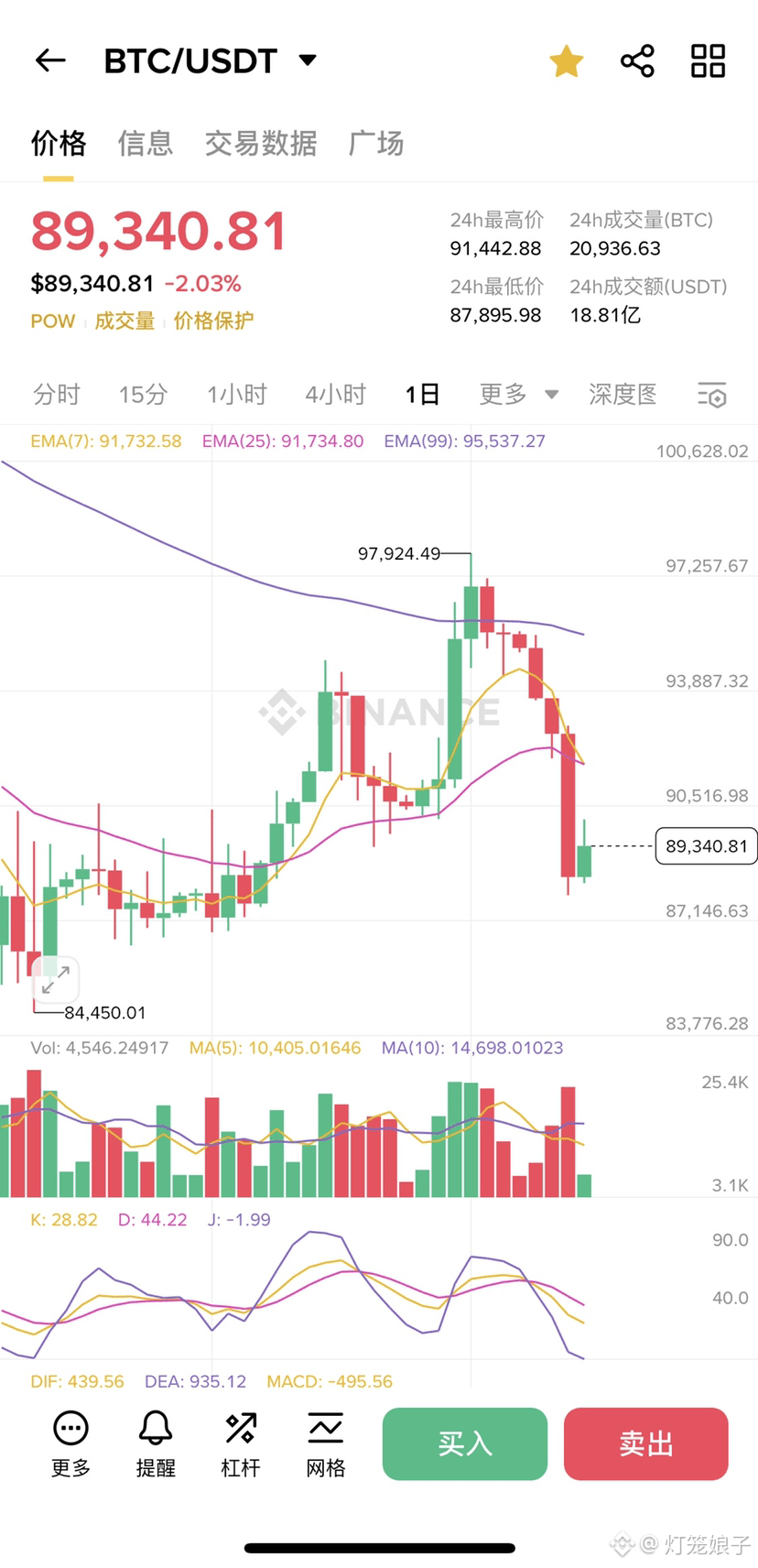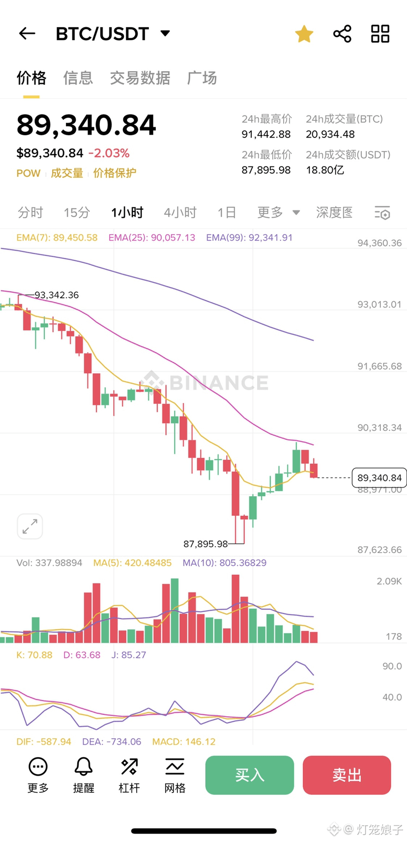 • 防守位(止损): 91,600 USDT。如果价格实体站稳91,500上方,说明短线调整结束,必须离场。