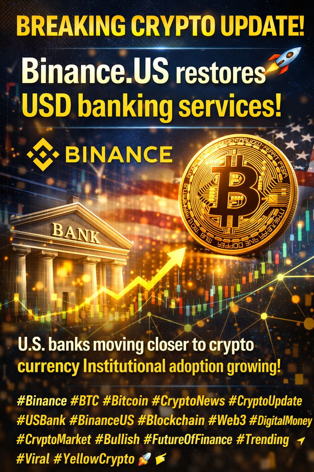 Binance.US restores USD banking services, bringing Bitcoin and crypto closer to U.S. banks. Big move for adoption! 💛