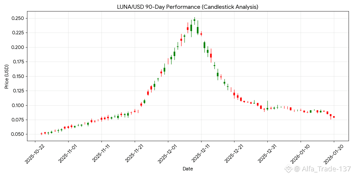 LUNA/USD 90-Day Candle Chart,The following chart illustrates the price action from late October 2025 to January 22, 2026, highlighting the volatile peak in December and the subsequent retracement.Key Technical Observations:Support Level: