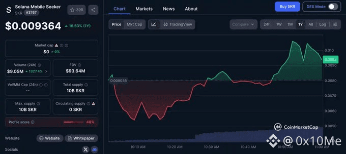 SKR 上线初期,价格在 $0.006 – $0.01 之间波动,目前大致落在 $0.0095 附近。按照这个价位计算: