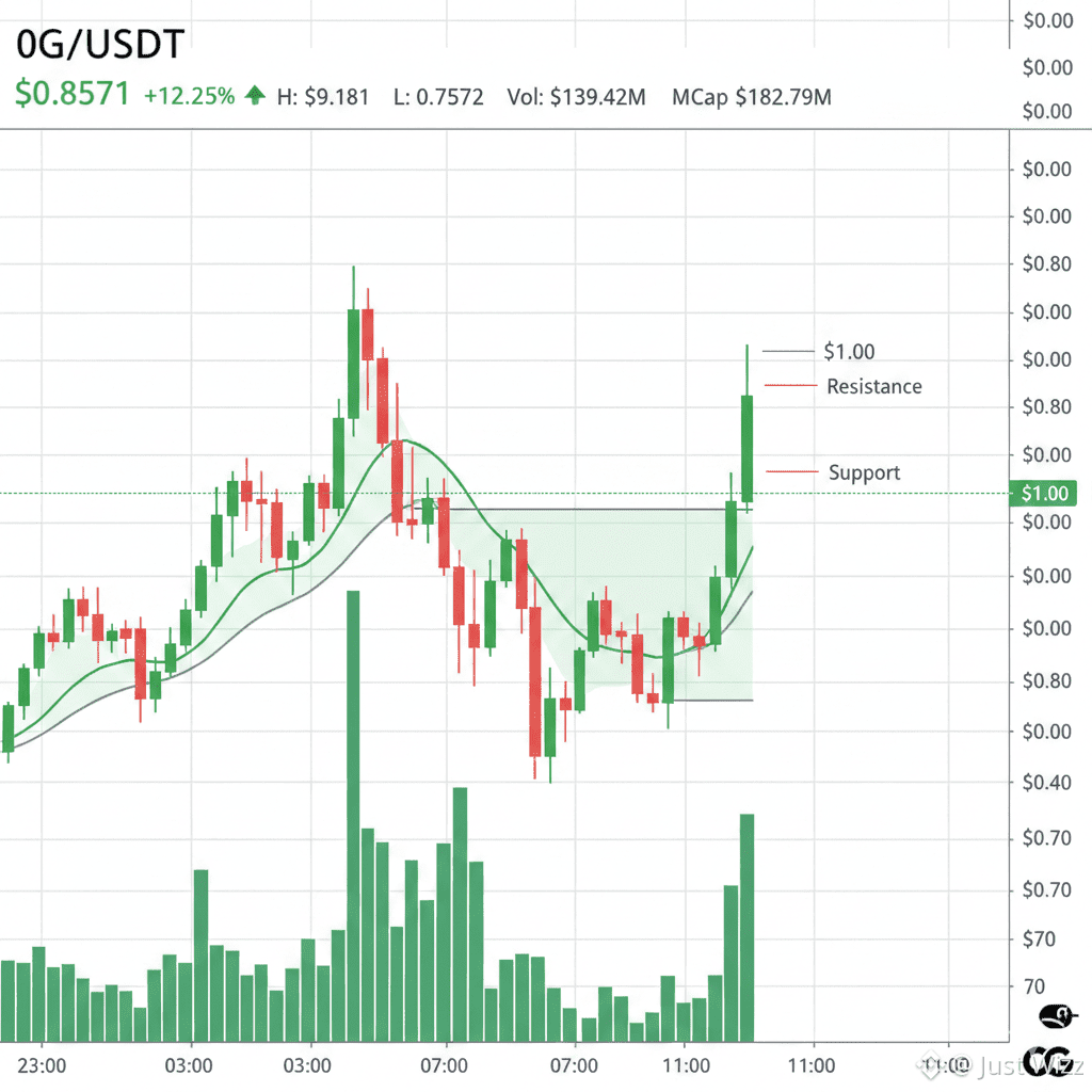 The recent price action is bolstered by 0G rading above its short-term EMAs (Exponential Moving Averages). With the 24-hour trading volume skyrocketing by nearly 600%, it is clear that "smart money" is accumulating.