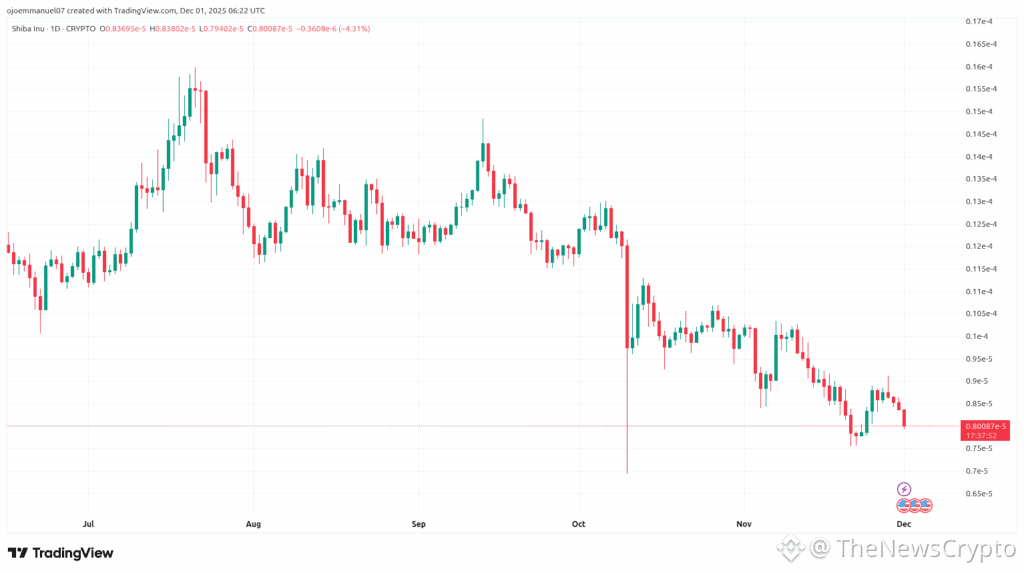 Shiba Inu's bouncing back a bit after hitting bottom, rising on four days this week while edging nearer to shedding an extra zero. Even with its 11% monthly decline, past cycles show SHIB often rebounds sharply after long periods of weakness. A 65% surge would flip 2025 into the green and set up a seasonal December rally, especially with Coinbase preparing perpetual-style SHIB futures.