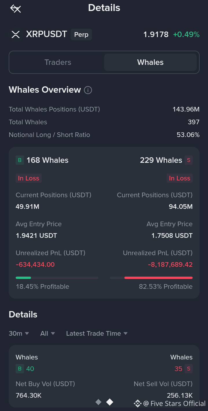 Data shows that major whales are shifting to short positions with a 0.89 ratio, signaling bearish sentiment despite retail optimism. Currently, 225 whales are already profiting from the recent drop, while XRP hovers at $1.91 support. A break below this level could trigger a rapid decline toward $1.85.