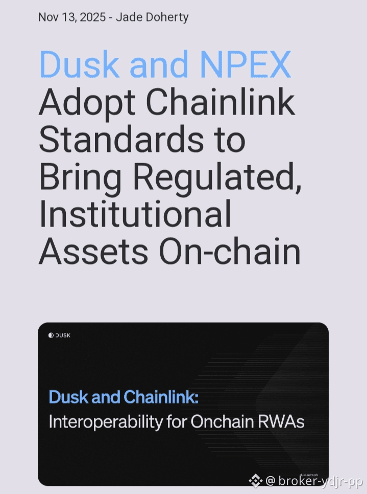 I’m still new to this, so I’m posting this like a learning journal. I came across an official @Dusk blog update (Nov 13, 2025) about Dusk + NPEX adopting Chainlink standards to help bring regulated, institutional assets on-chain. I’m sharing it now because I’m trying to understand what $DUSK is actually building and why #Dusk keeps mentioning regulated finance and privacy together.