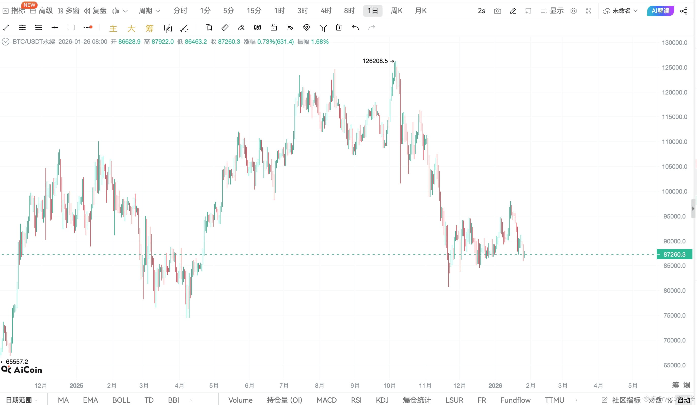 当前价格回到 87,000 上方震荡