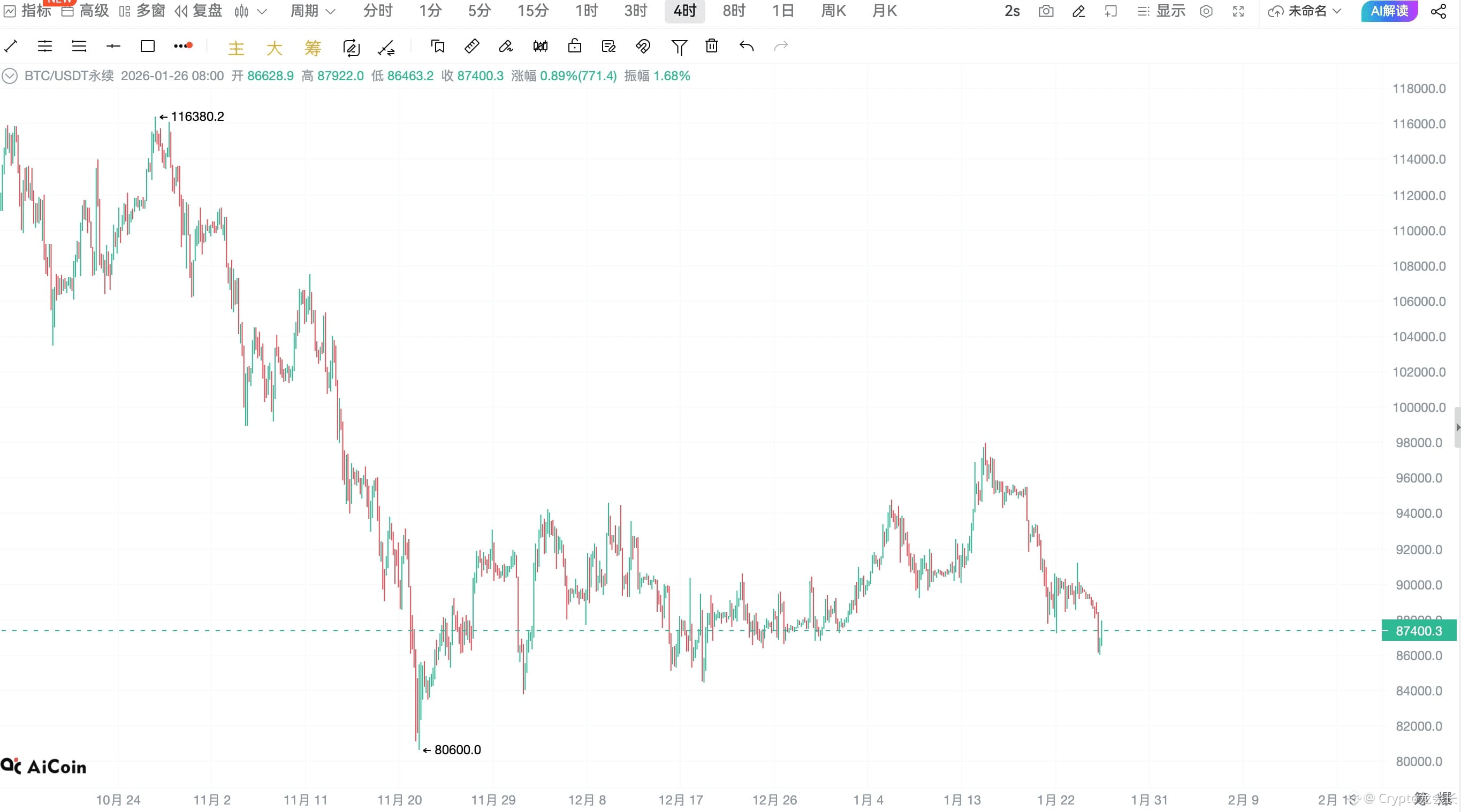 当前最低回踩至 86,000 – 87,000 区域
